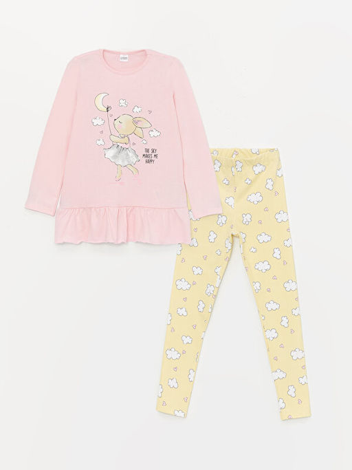 Bisiklet Yaka Bask?l? Uzun Kollu K?z ?ocuk Pijama Tak?m?