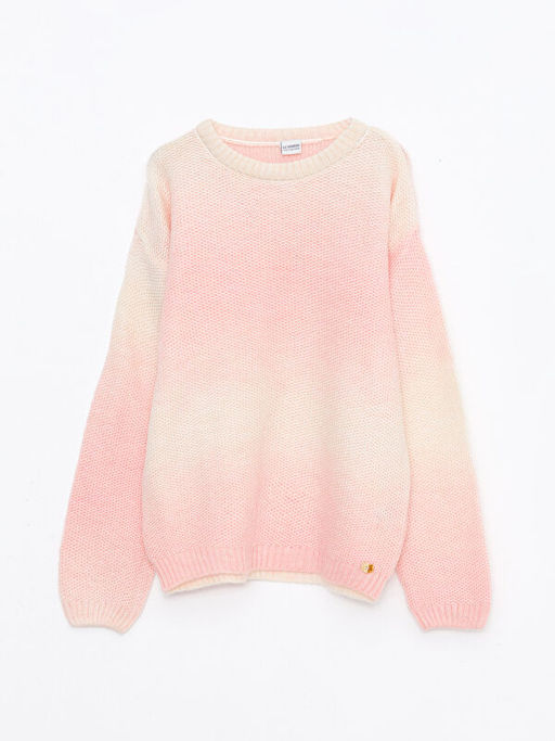Bisiklet Yaka Batik Desenli Uzun Kollu K?z ?ocuk Triko Kazak