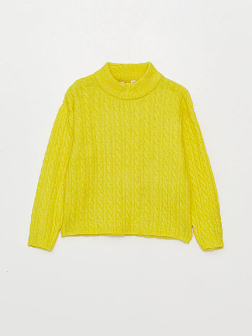Yar?m Bal?k?? Yaka Kendinden Desenli Uzun Kollu K?z ?ocuk Triko Kazak