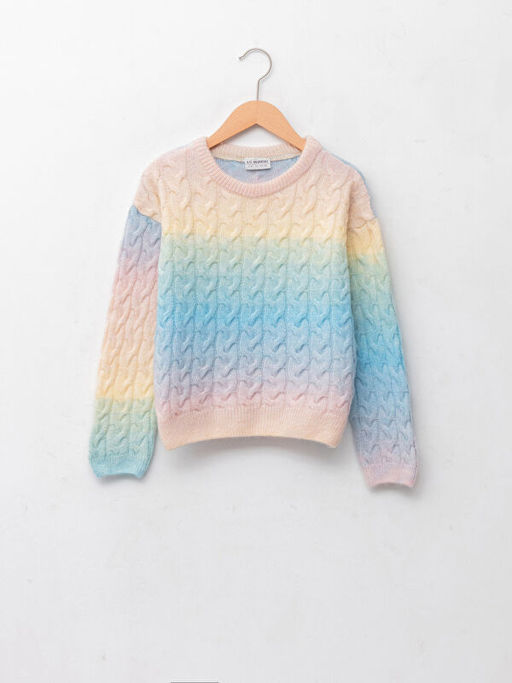 Bisiklet Yaka Sa? ?rg?s? Desenli Uzun Kollu K?z ?ocuk Triko Kazak