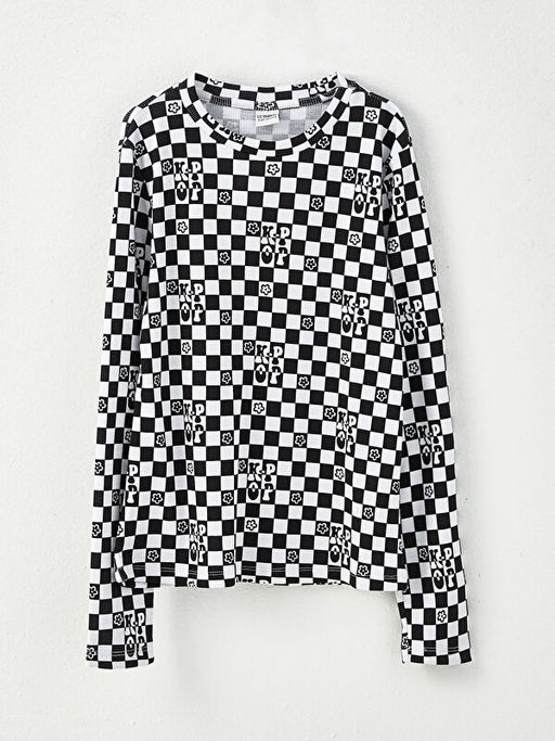 Bisiklet Yaka Bask?l? Uzun Kollu K?z ?ocuk Ti??rt