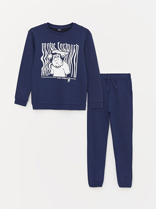 Bisiklet Yaka Bask?l? Uzun Kollu Erkek ?ocuk Sweatshirt ve E?ofman Alt?
