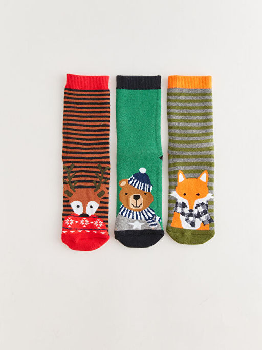 Desenli Erkek ?ocuk Havlu Soket ?orap 3l?