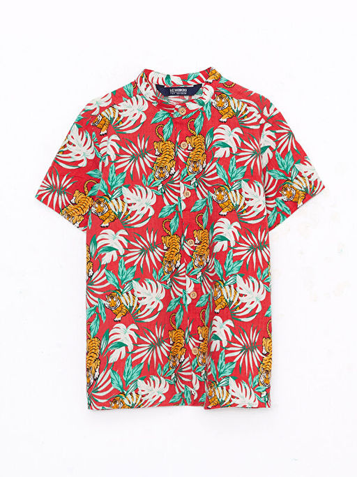 Hakim Yaka Desenli K?sa Kollu Poplin Erkek ?ocuk G?mlek