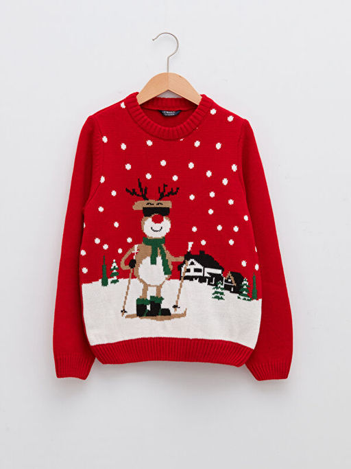 Bisiklet Yaka Y?lba?? Temal? Uzun Kollu Erkek ?ocuk Triko Kazak