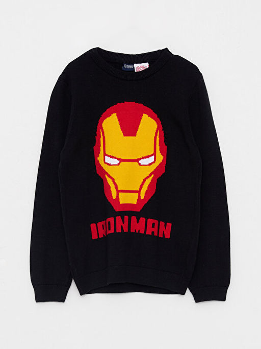 Bisiklet Yaka ?ron Man Bask?l? Uzun Kollu Erkek ?ocuk Triko Kazak