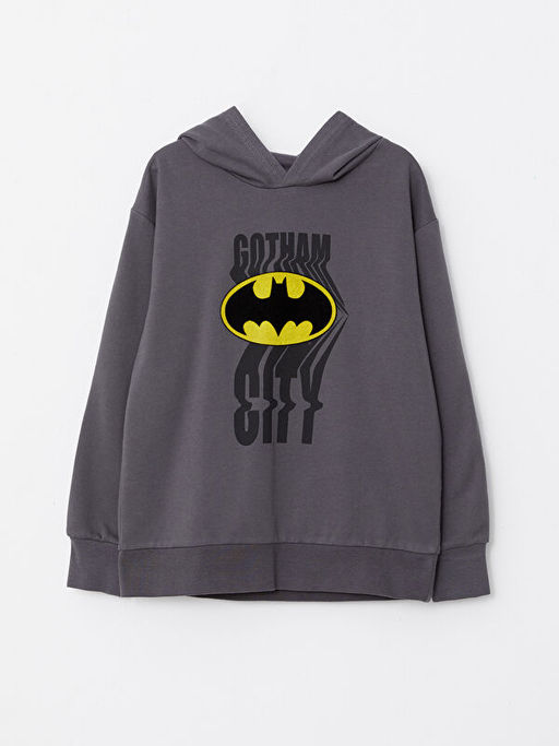 Kap??onlu Batman Bask?l? Uzun Kollu Erkek ?ocuk Sweatshirt