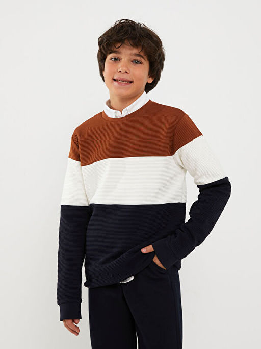 Bisiklet Yaka Renk Bloklu Uzun Kollu Erkek ?ocuk Sweatshirt Baba O?ul Kombini