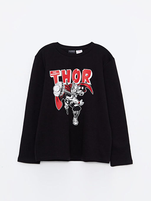 Bisiklet Yaka Thor Bask?l? Uzun Kollu Pamuklu Erkek ?ocuk Ti??rt