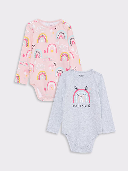 Bisiklet Yaka Uzun Kollu Bask?l? K?z Bebek ??t??tl? Body 2li