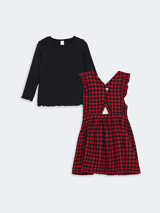 Uzun Kollu K?z Bebek Bluz ve Salopet Tak?m 2li Tak?m