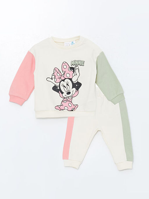 Bisiklet Yaka Minnie Mouse Bask?l? K?z Bebek Sweatshirt ve Tayt 2li Tak?m