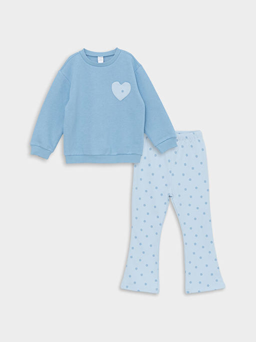 Bisiklet Yaka Uzun Kollu Bask?l? K?z Bebek Sweatshirt ve Tayt 2li Tak?m