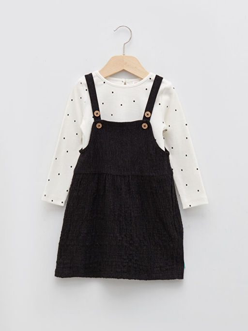 Bisiklet Yaka Uzun Kollu Bask?l? K?z Bebek Ti??rt ve Elbise 2li Tak?m