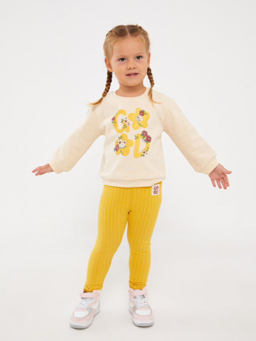 Bisiklet Yaka Uzun Kollu Bask?l? K?z Bebek Sweatshirt ve Tayt 2li Tak?m