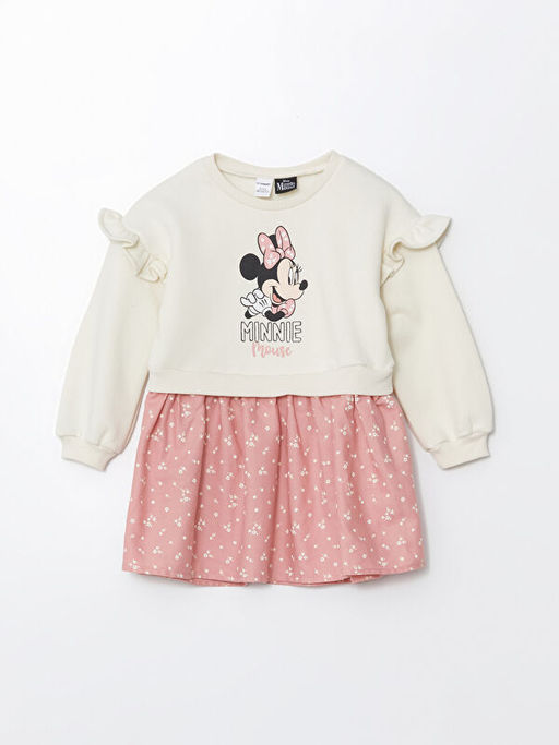 Bisiklet Yaka Uzun Kollu Minnie Mouse Bask?l? K?z Bebek Elbise
