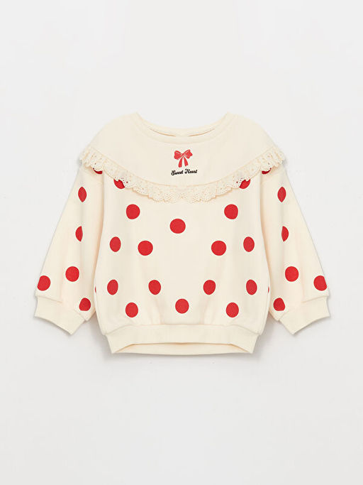 Bisiklet Yaka Puantiyeli K?z Bebek Sweatshirt