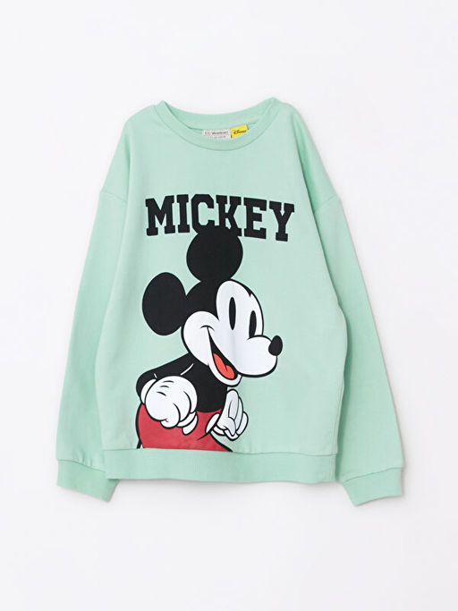 Bisiklet Yaka Mickey Mouse Bask?l? Uzun Kollu K?z ?ocuk Sweatshirt