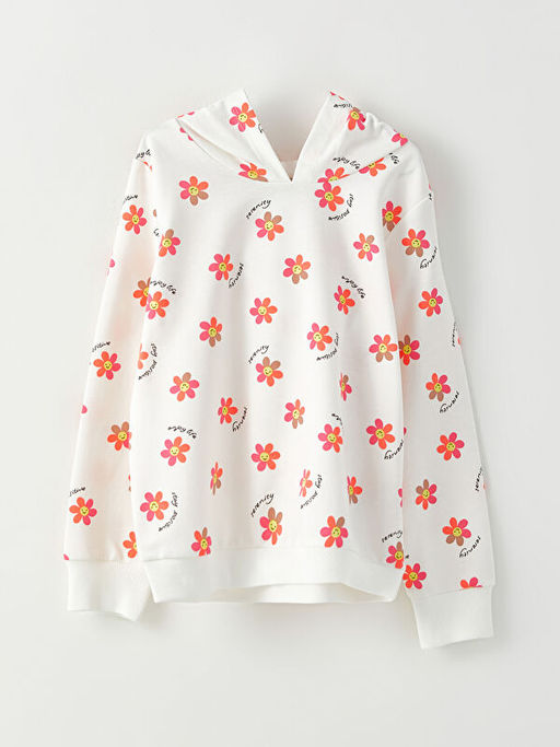 Kap??onlu Bask?l? Uzun Kollu K?z ?ocuk Sweatshirt