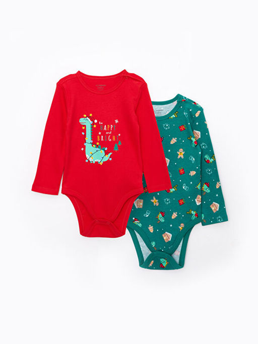 Bisiklet Yaka Uzun Kollu Y?lba?? Temal? Erkek Bebek ??t??tl? Body 2li