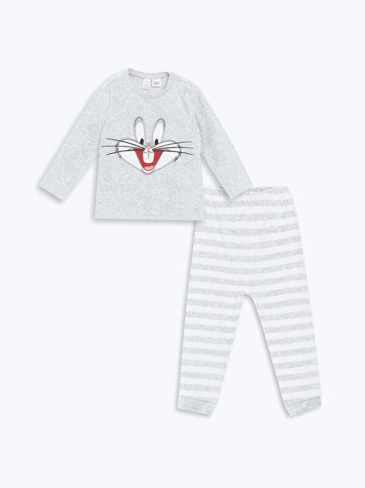 Bisiklet Yaka Bugs Bunny Bask?l? Erkek Bebek Pijama Tak?m?