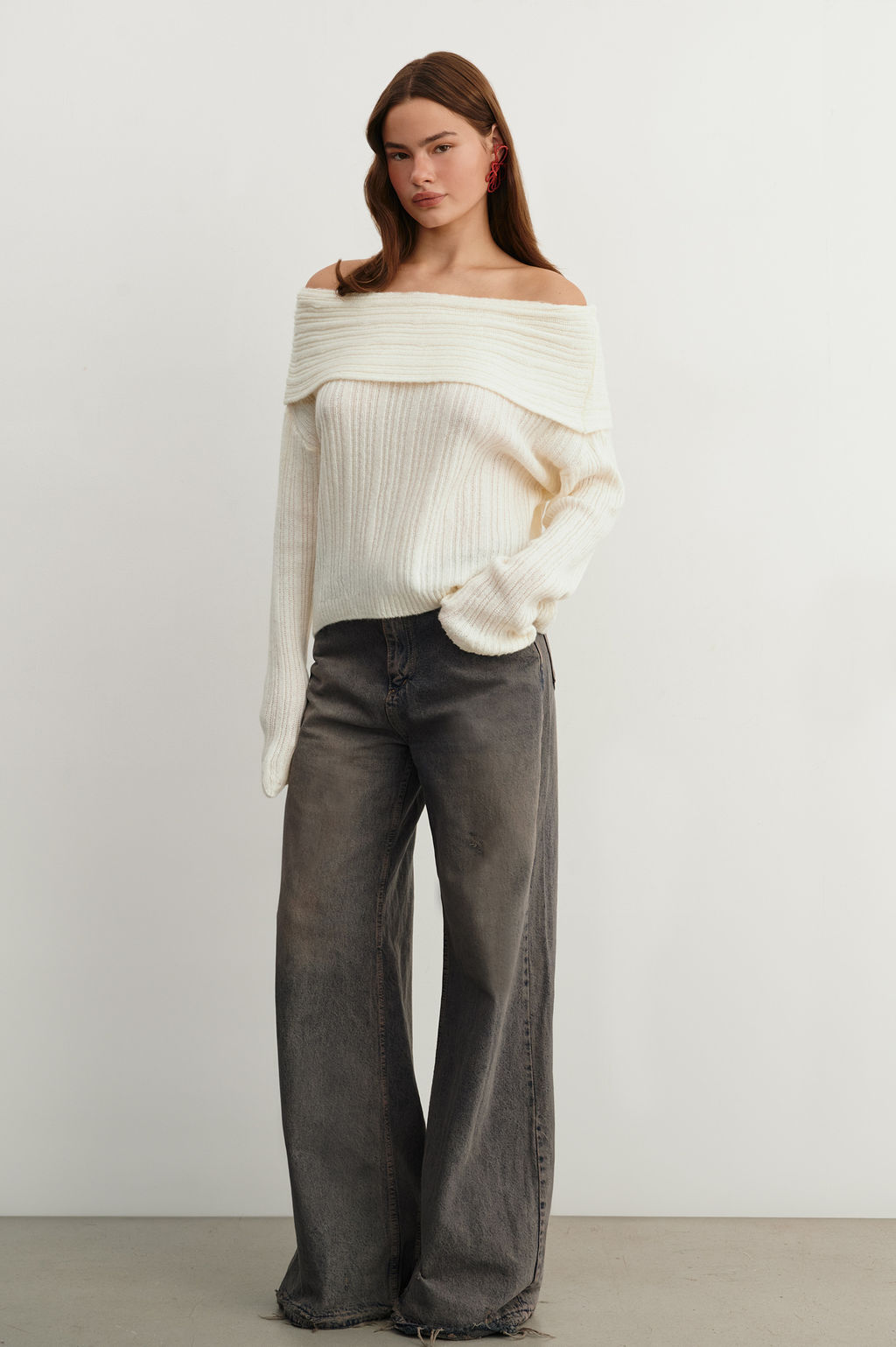 Джемпер из трикотажа с открытыми плечами