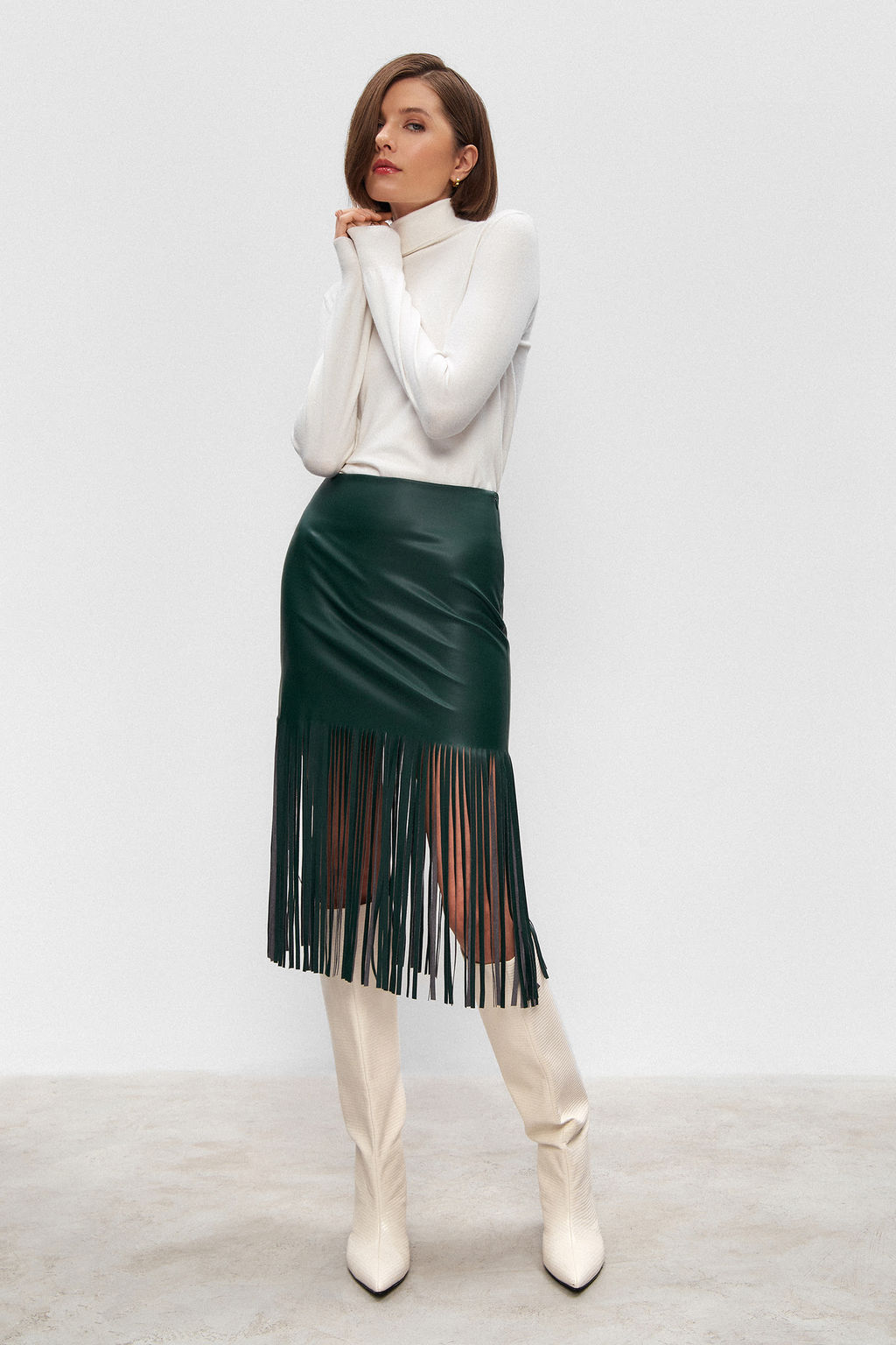 Юбка из экокожи с бахромой