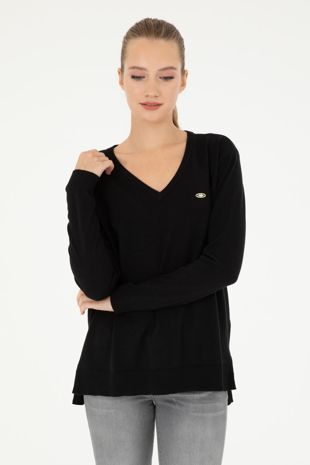 Женский черный базовый свитер с v-образным вырезом Неожиданная скидка в корзине