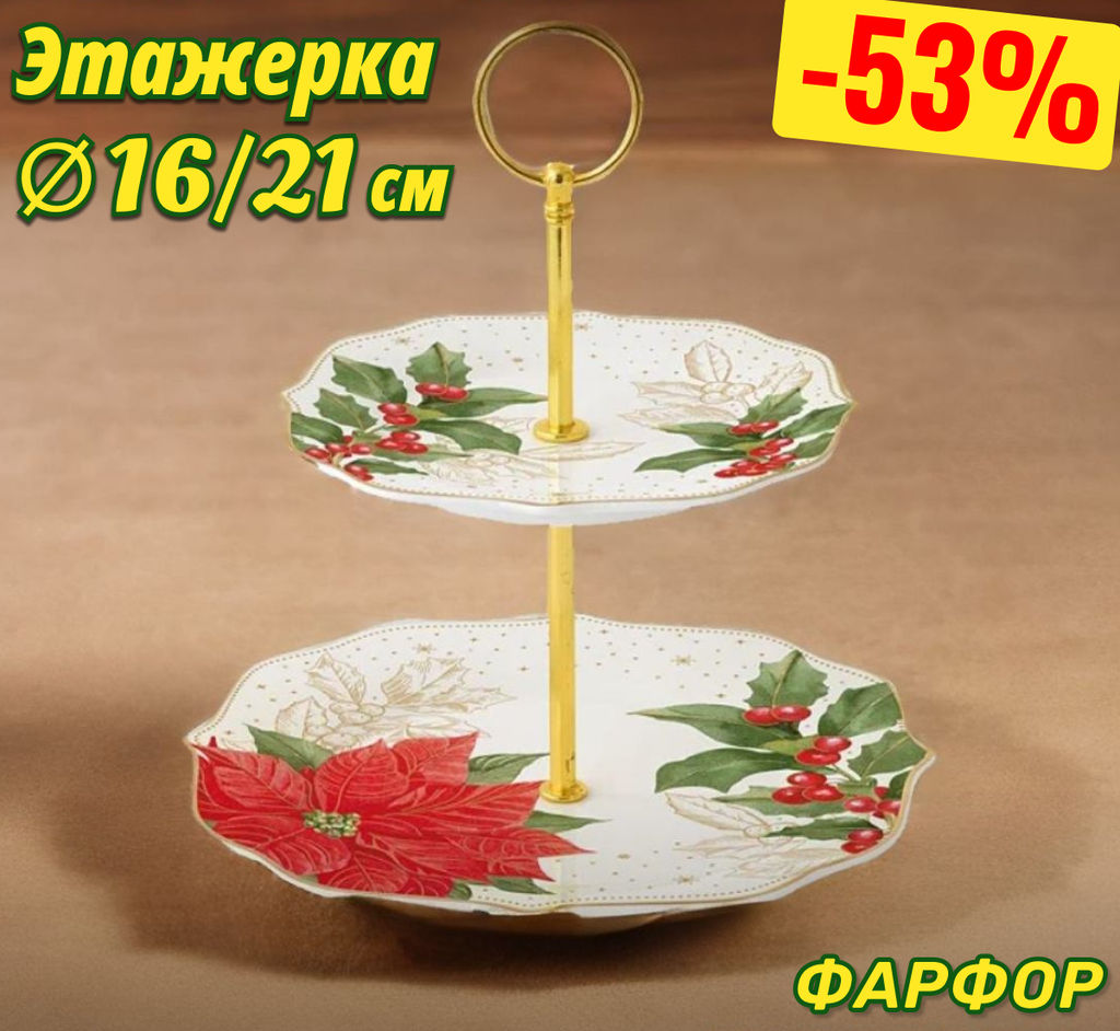 Ваза двухъярусная Пуансеттия и ягоды, 21 см