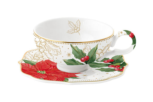 Чашка с блюдцем Пуансеттия и ягоды, 0,12 л