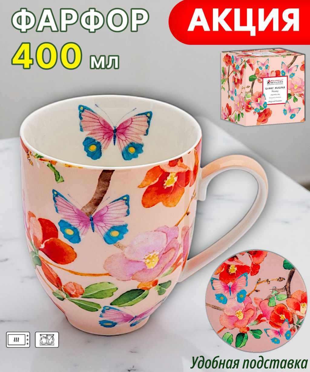 Кружка с подставкой Камелии на розовом, 0,4 л