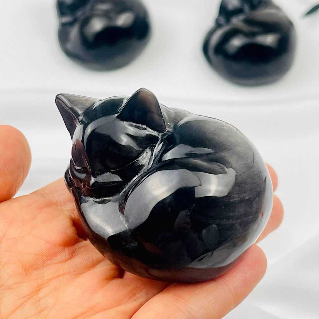 Радуга Самоцветов Фигурка "Кошка" из серебристого Обсидиана