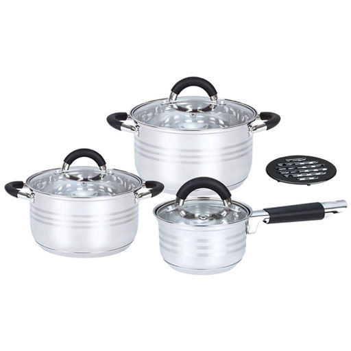 Набор посуды Webber BE-636/6 из нерж.стали 6 пр. Кастрюли с ковшом 0,9л, 2,7л, 3,6л стекл. крышки+п