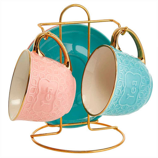 Чайный набор Rosario Ф11-013К/4 4 предмета на мет подставке, (бирюз+розовый) (16)