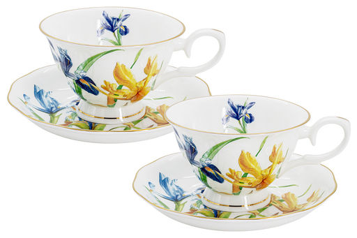 Пара чайная, 2 перс, 4 пр, 180 мл, белая, с золотистым кантом, Ирисы, Summer garden