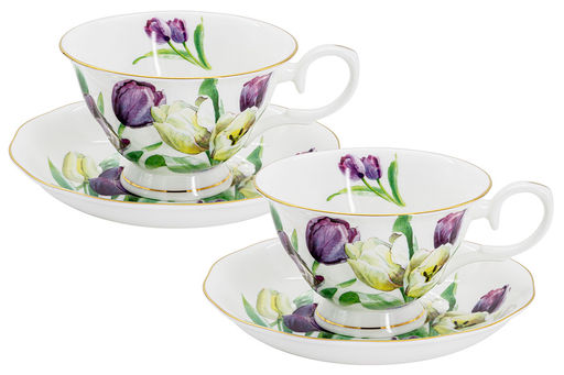 Пара чайная, 2 перс, 4 пр, 180 мл, белая, с золотистым кантом, Тюльпаны, Summer garden