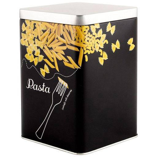 Банка с крышкой металлическая, квадратная, объем 1000 мл, дизайн "Макароны" арт.008618 /Mallony/