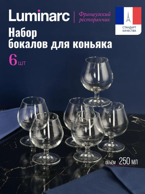 Набор фужеров (бокалов) для коньяка ФРАНЦУЗСКИЙ РЕСТОРАНЧИК 6шт 250мл арт.J0010 /Люминарк/