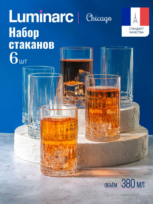 Набор стаканов Чикаго высокий 380мл 6шт арт.O0513 /Люминарк/
