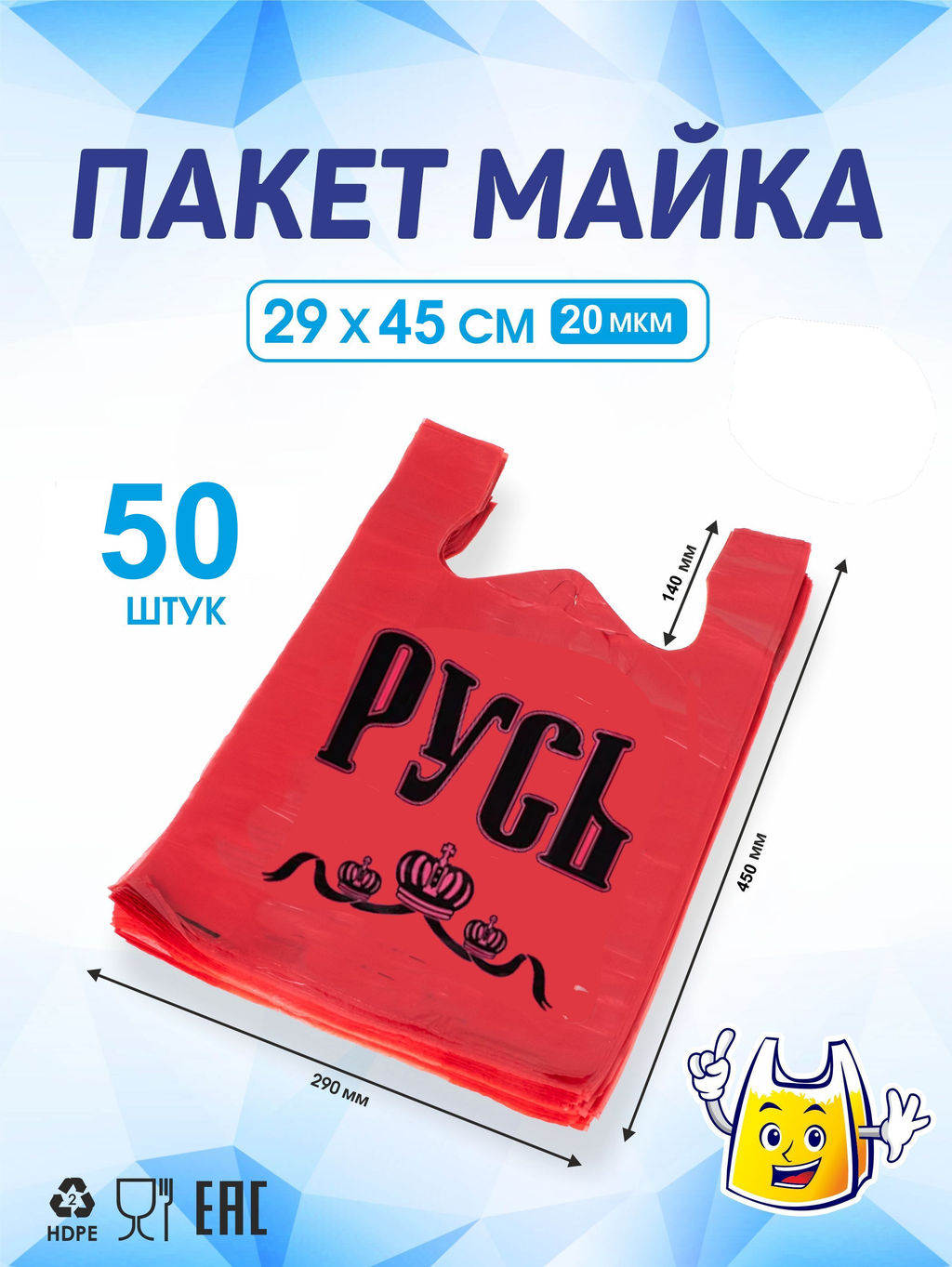 Пакет майка ПНД 29+14х45 20мкм "РУСЬ КРАСНАЯ" упак/50шт.