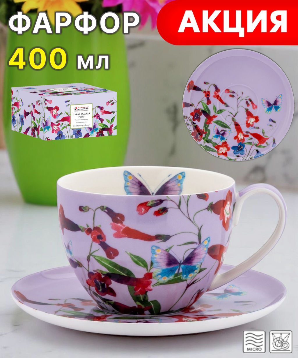 Чашка с блюдцем Пенстемоны, 0,4 л