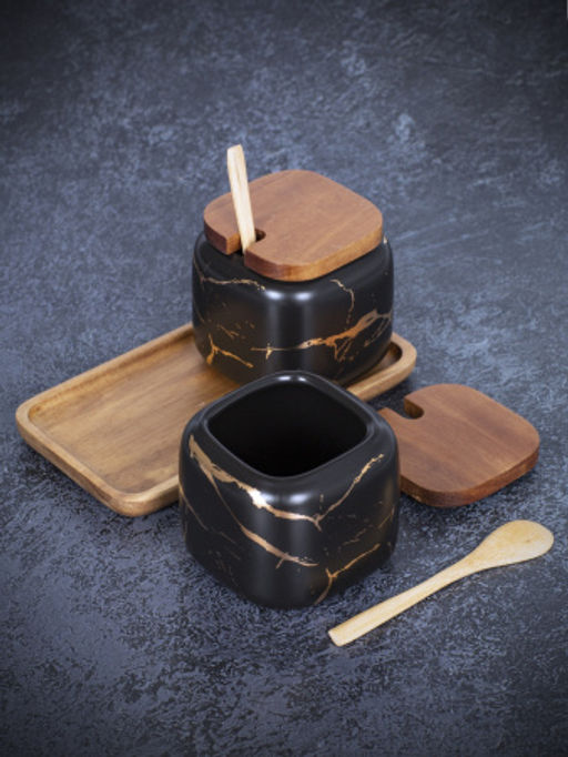 Набор для специй на подносе 4пр (2 баночки, 2 ложки)