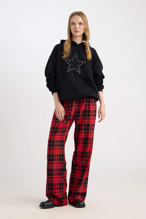 Прохладные широкие брюки Широкие брюки в клетку с карманами на талии Эластичные пижамные брюки с нормальной талией