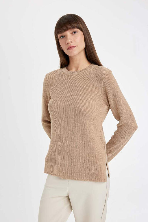 Женский свитер-туника из блестящей ткани обычного кроя с круглым вырезом