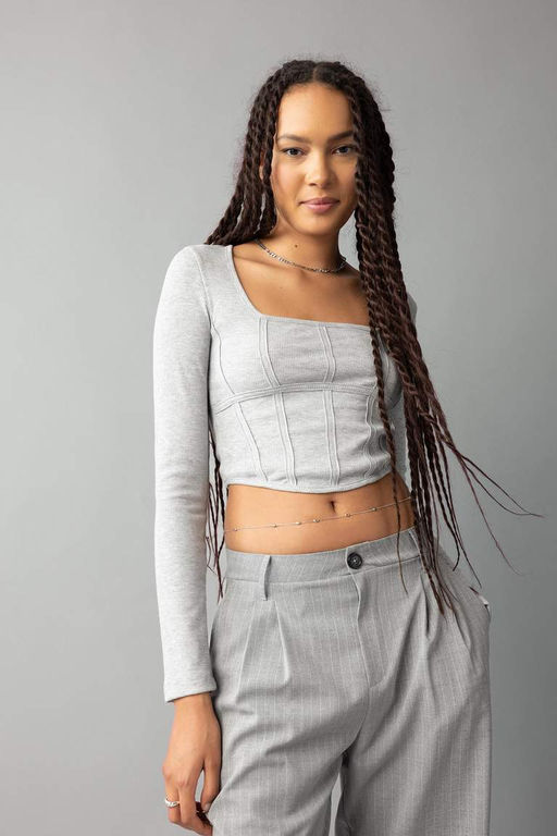 Приталенная футболка с длинными рукавами и круглым вырезом в рубчик