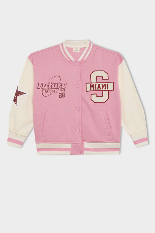 Кардиган-бомбер на толстой мягкой подкладке с воротником колледжа для девочек и застежкой-кнопкой