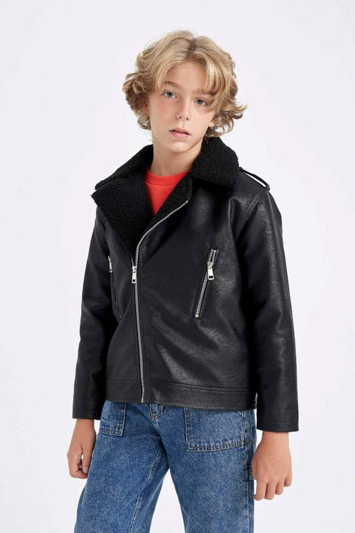 Водоотталкивающее пальто из искусственной кожи с карманом на молнии и подкладкой из искусственного меха для мальчиков