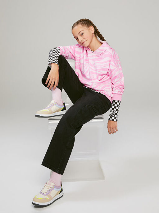 Basic Pamuklu Geni? Pa?a K?z ?ocuk Jean Pantolon