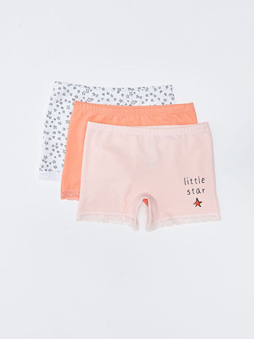 Bask?l? Pamuklu K?z ?ocuk Boxer 3l?