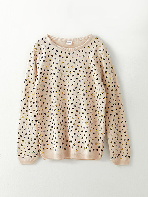 Bisiklet Yaka Bask?l? Uzun Kollu K?z ?ocuk Triko Kazak